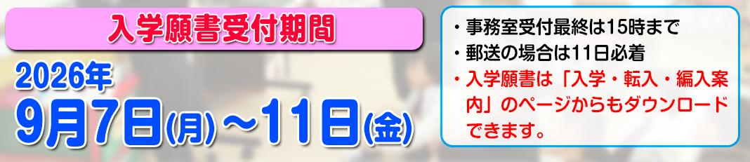 入学願書受付 9月7日(月)〜11日(金)